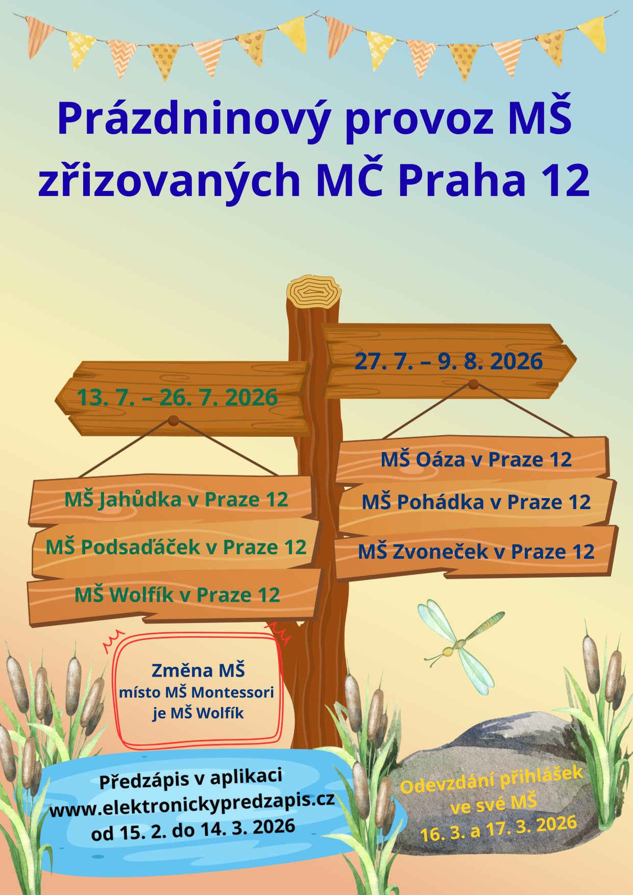 MŠ Pastelka letos nemá prázdninový provoz a bude uzavřena od 1. 7. – 31. 8. 2026